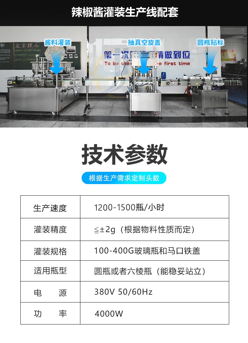 全自動雙頭醬料灌裝機兼容6種瓶型,容量范圍內可兼容多種瓶型的灌裝,一鍵式操作,開機即能使用。更換瓶型無需更換配件。