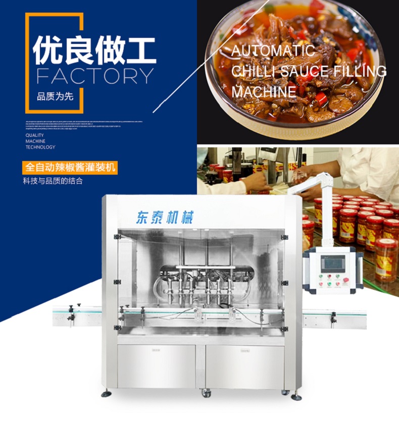 辣椒醬起源于印度尼西亞 選用新鮮辣椒和配料所調(diào)制可用做烹調(diào)菜、配蝦和其他海鮮或蘸食物,中國關(guān)于辣椒的記載是明代高濂撰《遵生八箋》,在明朝末年傳入中國。隨著辣椒醬的傳入,再加上1984年,老干媽的推出,現(xiàn)如今辣椒醬可是人們餐桌上離不開的一道美食了,辣椒醬好吃又美味,但是辣椒醬是如何灌裝的呢?這就要用到我們推出的辣椒醬福利!辣椒醬灌裝機了。