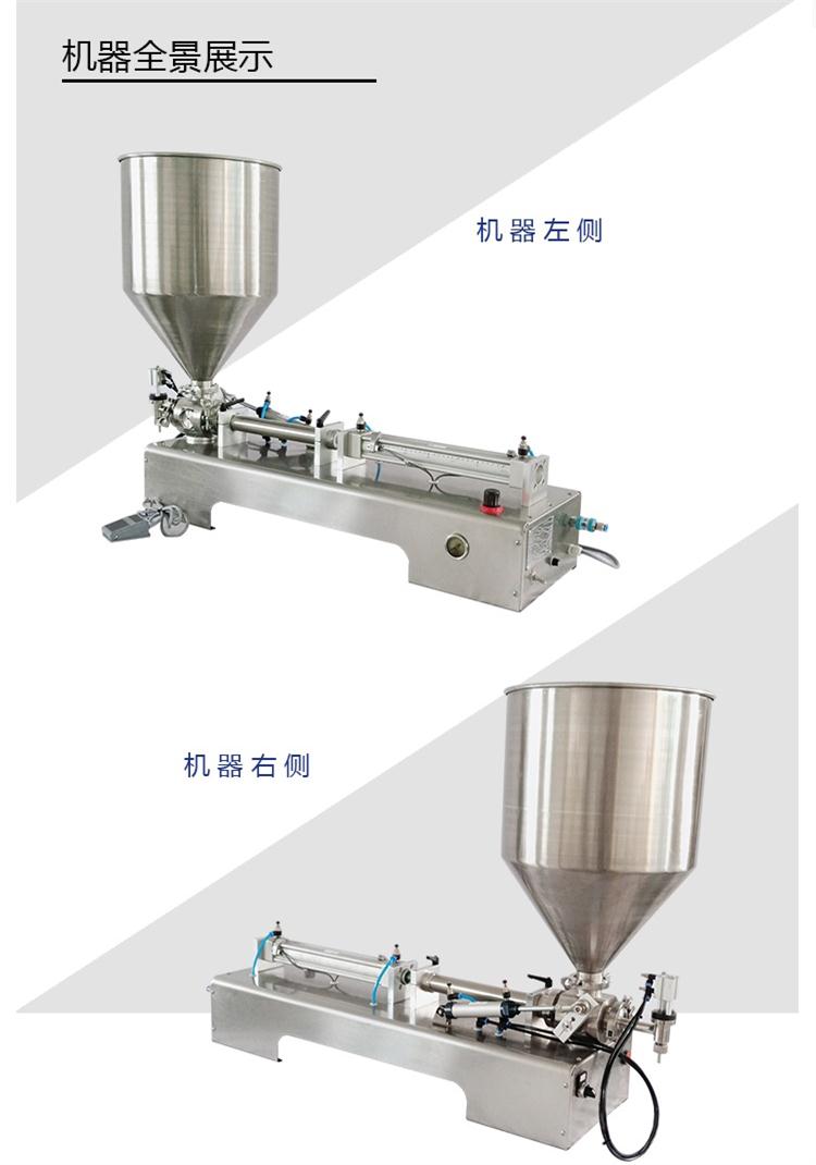 氣動膏體灌裝機主要適用于化工、食品、日化、藥品、農(nóng)藥、潤滑油等行業(yè)的液體膏體等物質(zhì)的定量灌裝,該灌裝機缸體、機殼、料斗均由不銹鋼材質(zhì)制成,活塞有四氟乙烯材料制成,氣動部分均采用氣動元件,符合GMP[要求,氣動膏體灌裝機的灌裝量和灌裝速度可任意調(diào)節(jié),擁有腳踏開關(guān)和自動灌裝功能,精度高,結(jié)構(gòu)簡潔,操作便利。