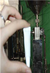 2、加入產品之后,手壓下手動操縱桿,壓到產品能正常從灌裝嘴出來為止。